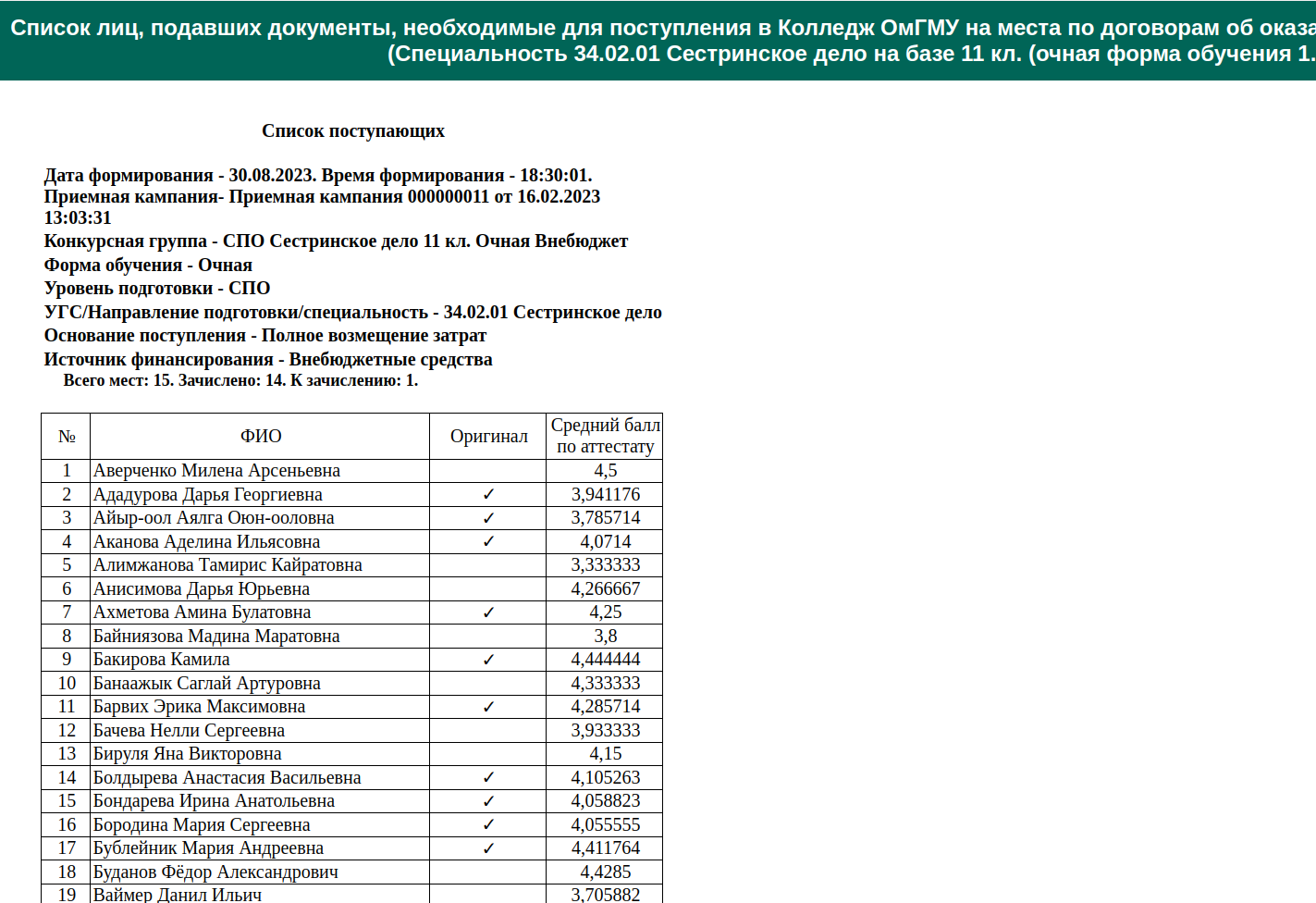 School No. 135, School No. 42, Omsk State Medical University - Specialty 34.02.01 Nursing